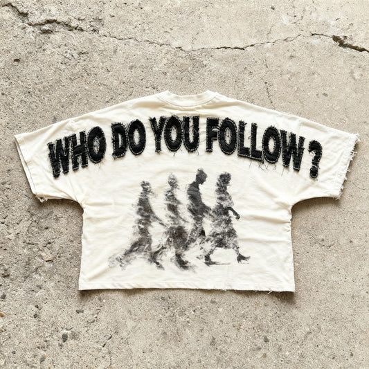 Who Do You Follow - Sand Boxy Cropped Tee